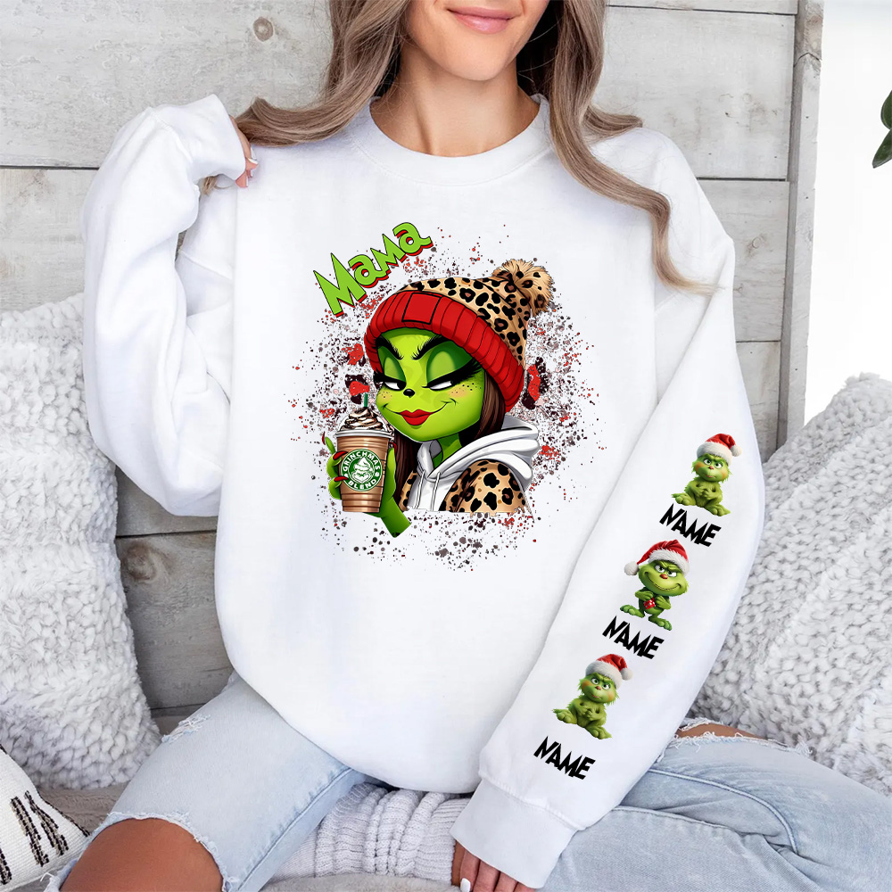Christmas Mama Sweatshirt With Kids Names, Christmas Boujee Character Sweatshirt