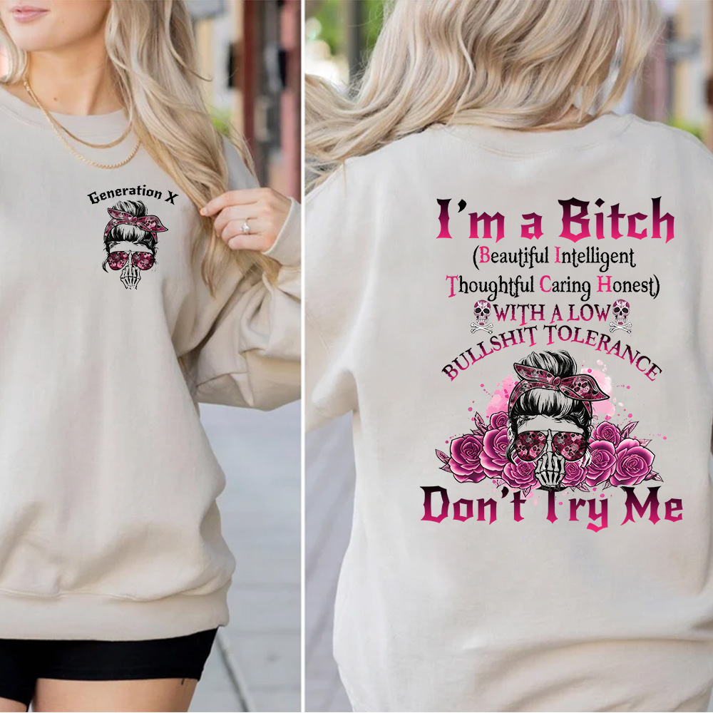 Custom Generation Skull Hoodie Don't Try Me I'm The B*tch Gen X Seatshirt
