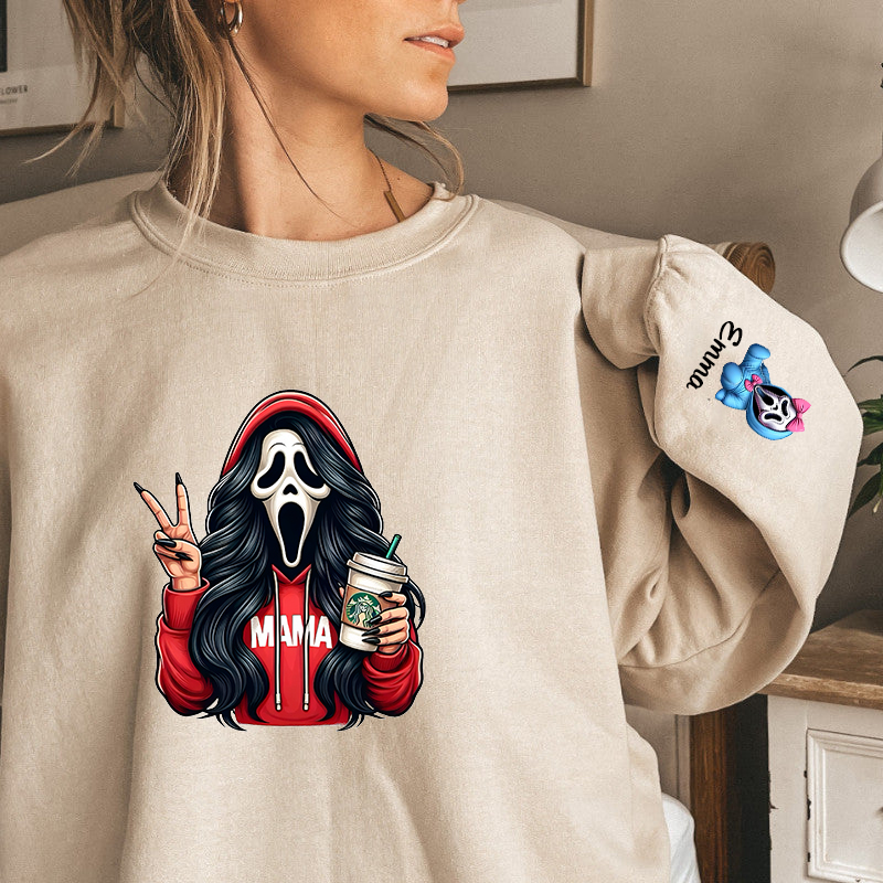 Custom Halloween MAMA Sweatshirt with Kid's Names on the Sleeve