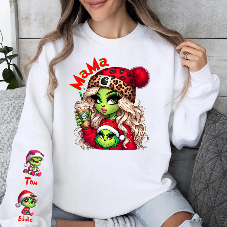 Custom Retro Cute Christmas Mama With Kid's Name On Sleeve Sweatshirt