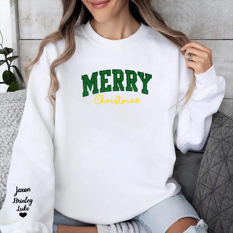 Custom Sweatshirt Side Bow Embroidered Tree Christmas 🎄Merry Christmas Sweatshirts