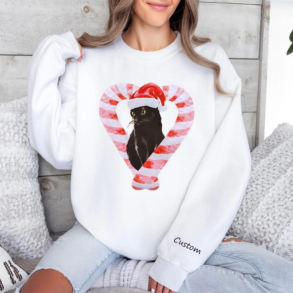 Cute Christmas Cat Sweatshirt 🎄 | Personalized Holiday Pullover with Candy Cane Heart & Santa Hat | Custom Xmas Gift for Cat Lovers 🐱🎁
