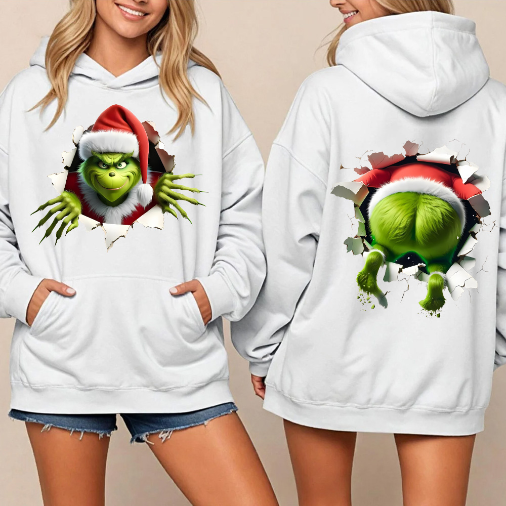 Funny Grinch Christmas Hoodie | 3D Santa Monster Sweatshirt | Front and Back Print Holiday Pullover | Ugly Christmas Gift for Friends