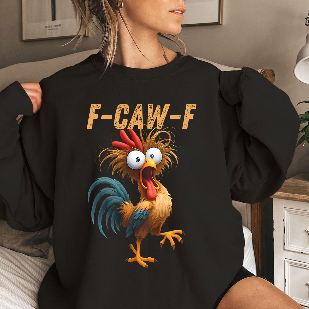 Funny Rooster Meme Sweatshirt, F-CAW-F Chicken Humor Sweatshirt, Silly Farm Animal Graphic Top, Birthday Gift for Men Women