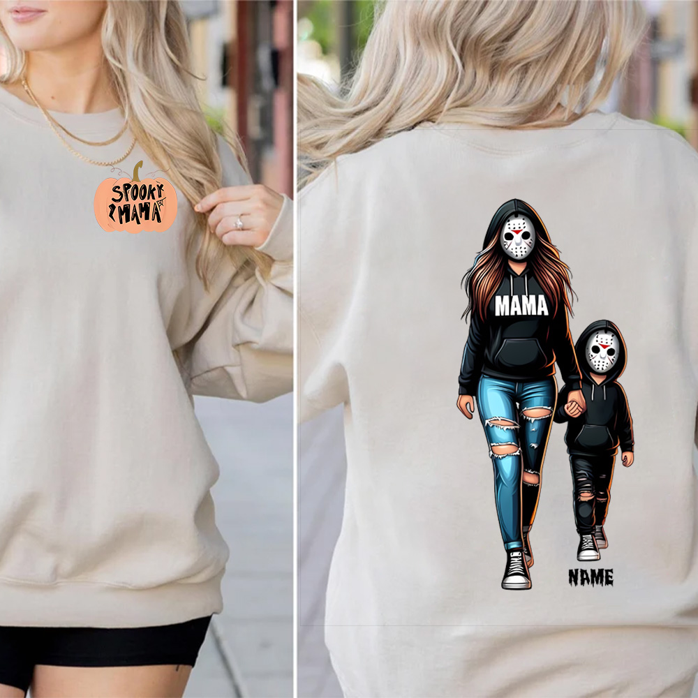 Halloween Horror Mama Custom Kids Name Sweatshirt, Custom Spooky Mama Hoodie, Killer Halloween Crewneck