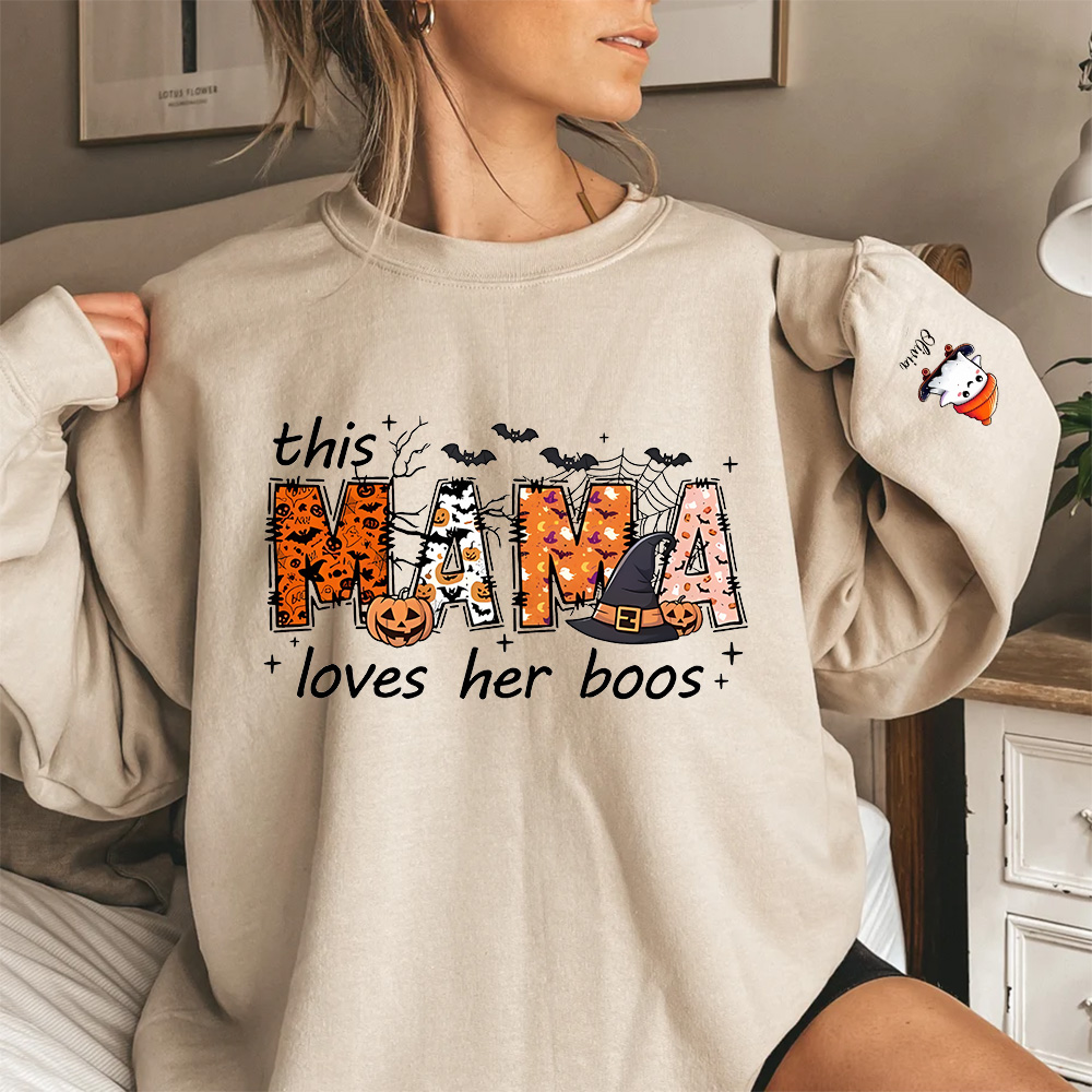 Halloween Mama Sweatshirt: Ghost Kids Graphics on Sleeve – Custom Fit