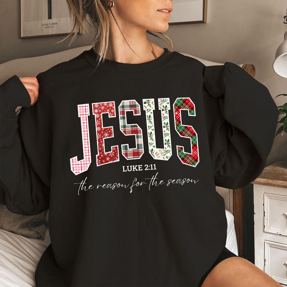 Jesus Kryst Sweatshirt | Personalized fakânsje trui mei Luke 2:11 & feestlik plaid ûntwerp | De reden foar it seizoen Kryst Shirt