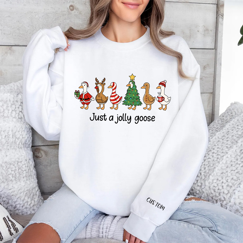 “Just a Jolly Goose” Christmas Sweatshirt | Funny Holiday Goose Family Pullover | Customizable Festive Gift for Family & Friends