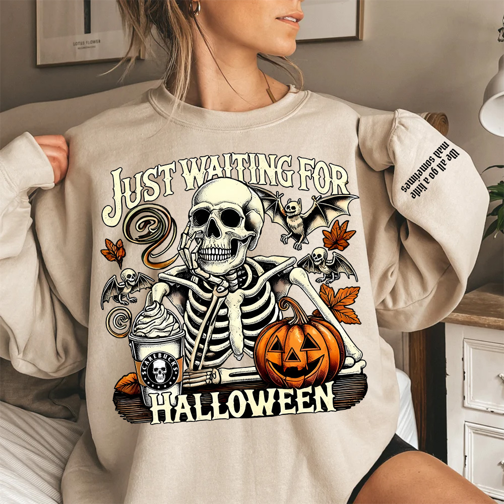Just Waiting for Halloween, Funny Skeleton Sweatshirt