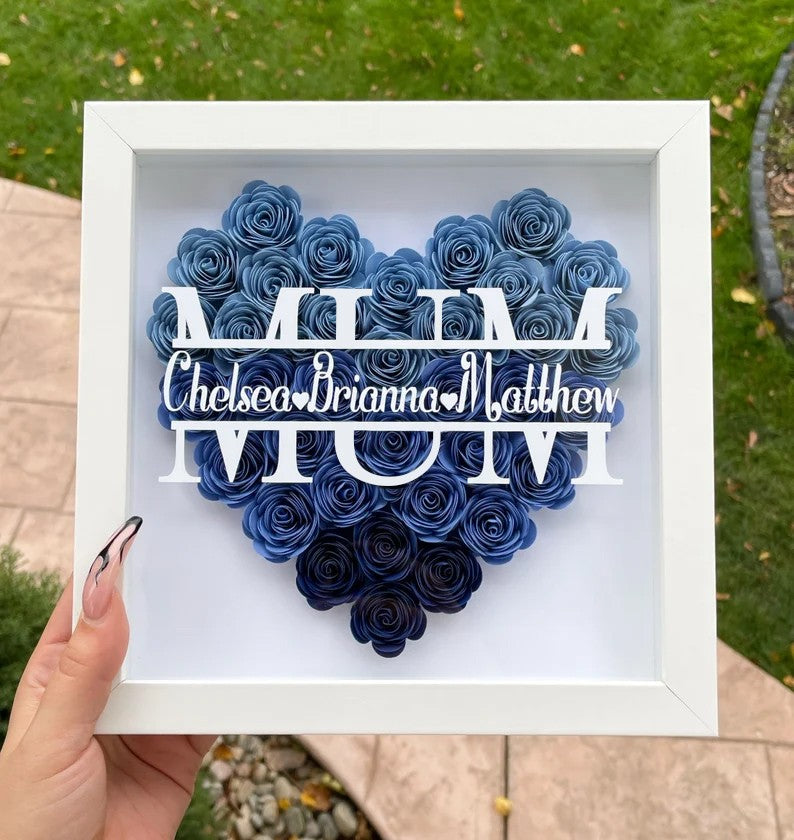 MUM Heart Shaped Monogram Flower Shadow Box Gift For Mothers
