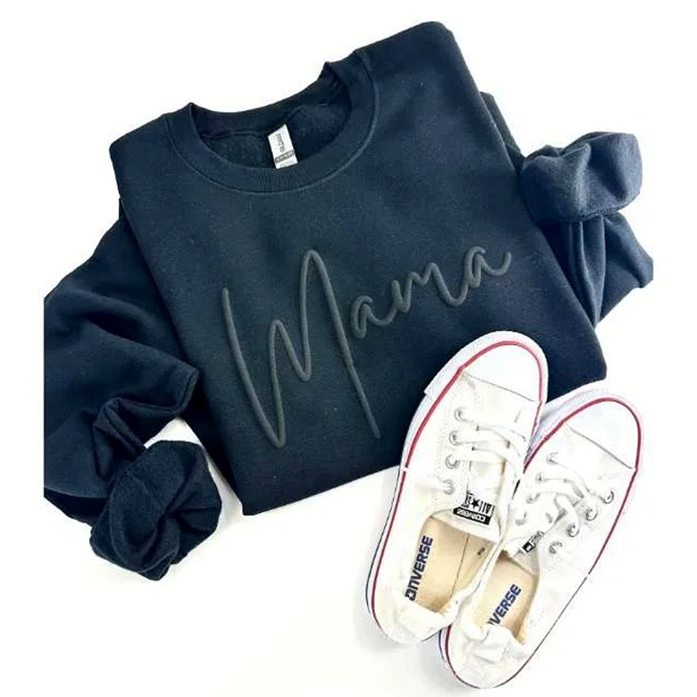 Puff Print Mama Sweatshirt With Kid Names On Sleeve