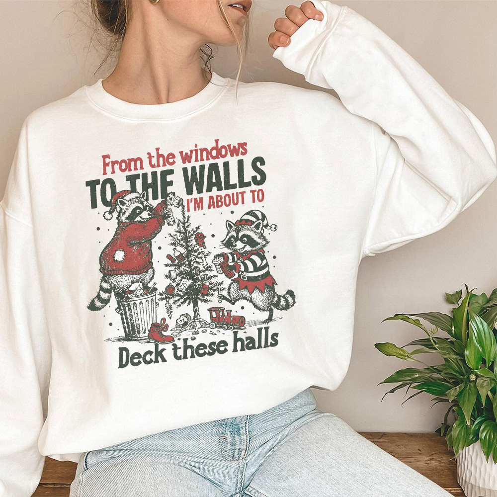 Raccoon Christmas Sweatshirt, Funny Retro Holiday Crewneck