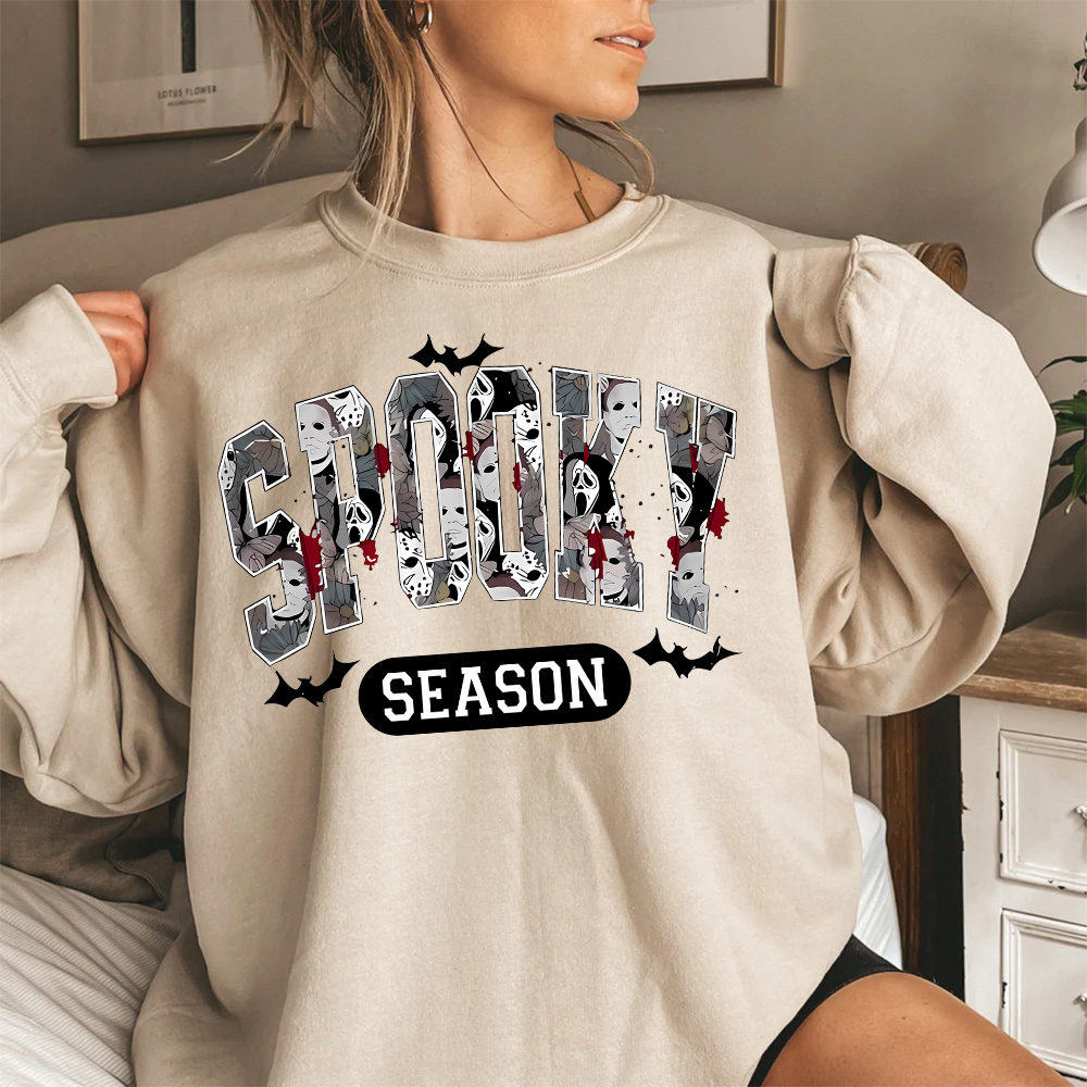 Spooky Season Halloween Sweatshirt – Horror Movie Graphic Oversized Pullover
