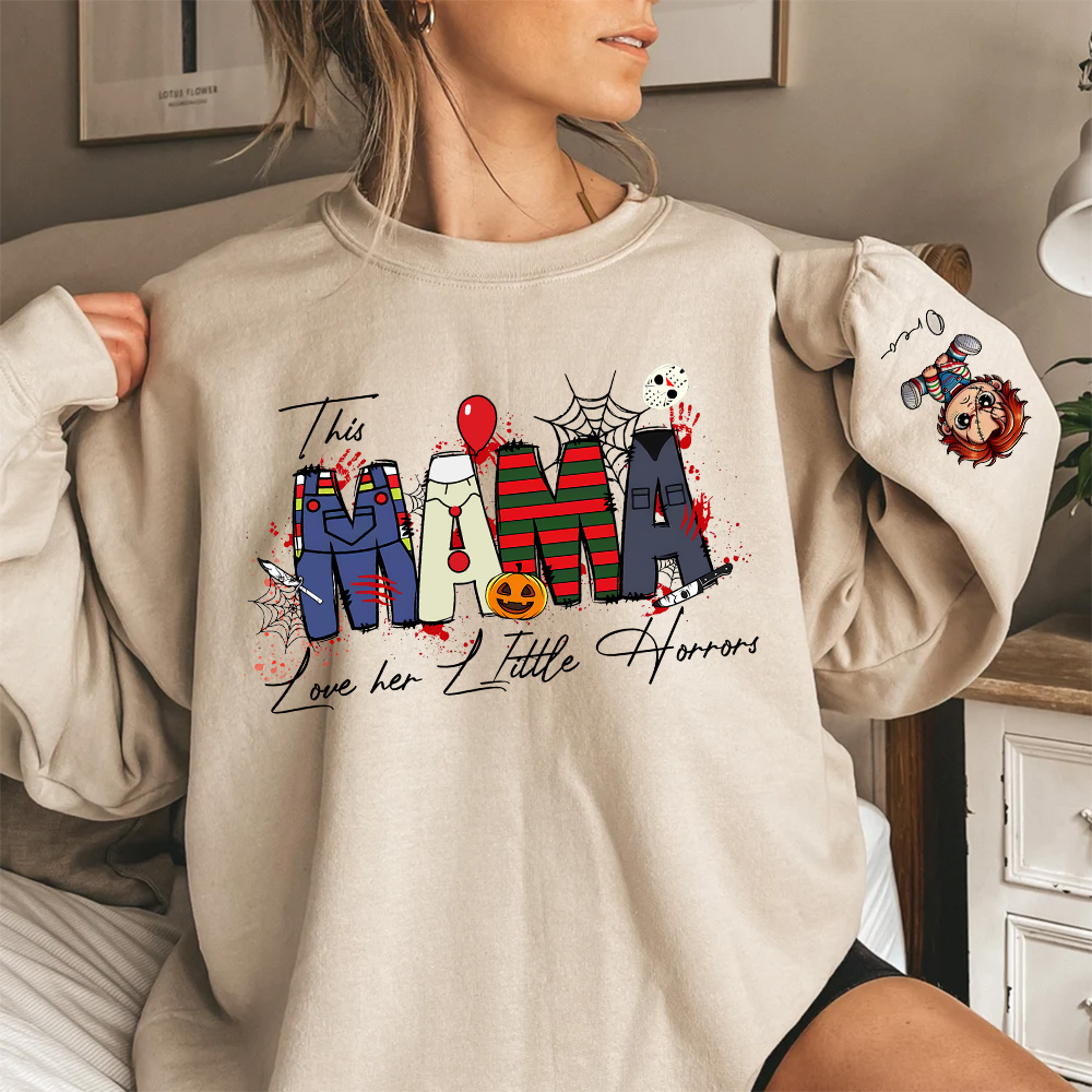 This Mama Loves Her Horrors Crew, Halloween Sweater, Spooky Halloween Mama Sweatshirt