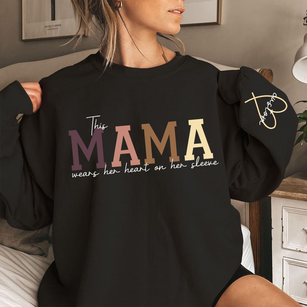 This Mama Wears Her Heart on Her Sleeve Sweatshirt – Cozy Gift for Moms